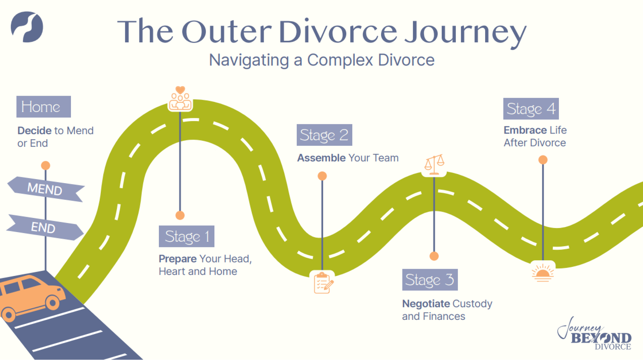 This roadmap is your interactive guide through the divorce journey. It provides a clear overview of the entire journey, pinpointing your exact location and guiding you confidently to your next right step. Each click provides direct access to the professionals, resources, courses, and community tailored to support each stage, ensuring you receive precisely what you need, exactly when you need it.